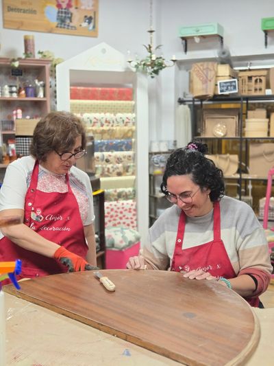 En mi taller, imparto cursos mensuales de restauración, pintura decorativa con chalk paint y tapicería moderna. Cada curso cubre una amplia gama de técnicas y acabados, adaptados a las necesidades y ritmo de cada alumno y a la pieza que se esté trabajando.